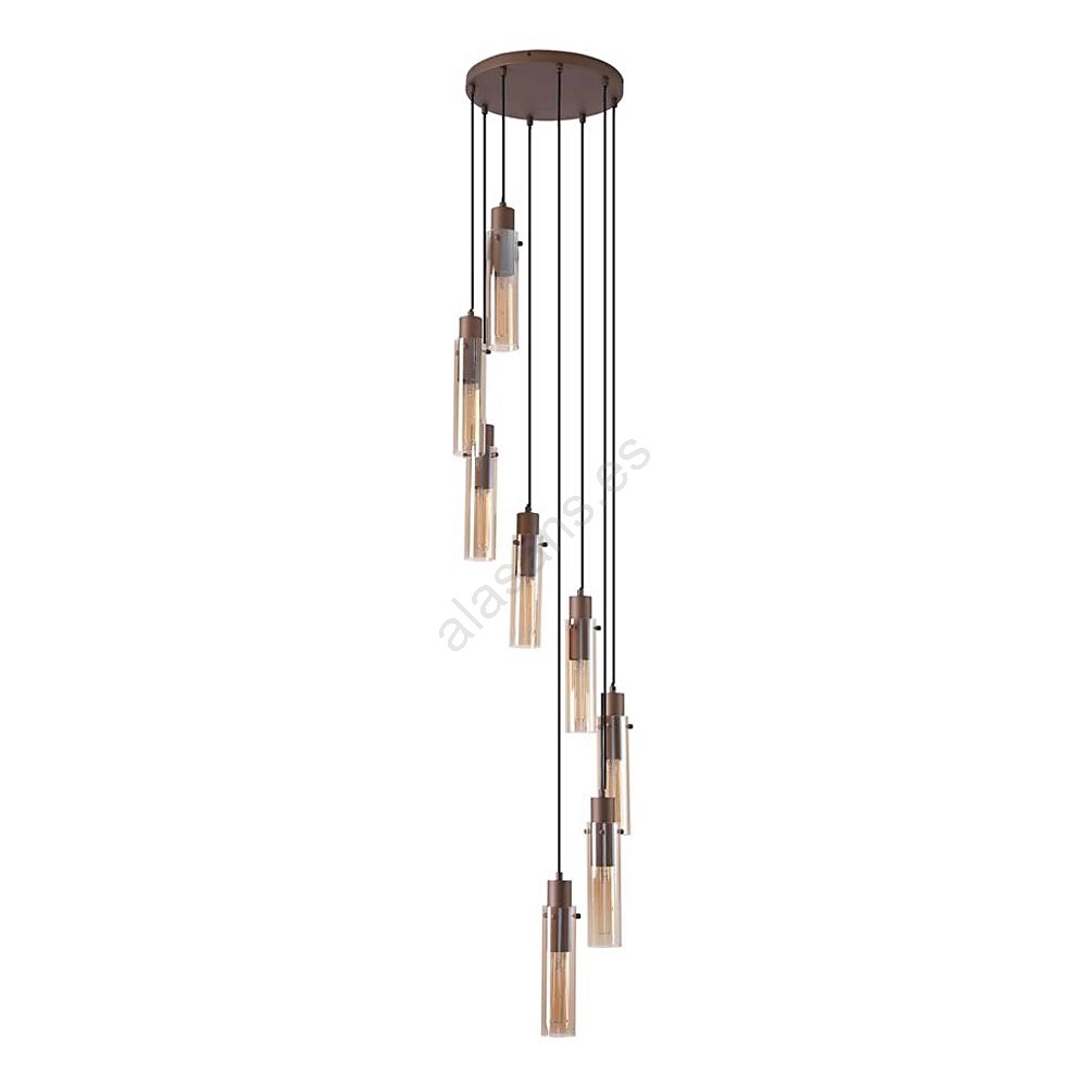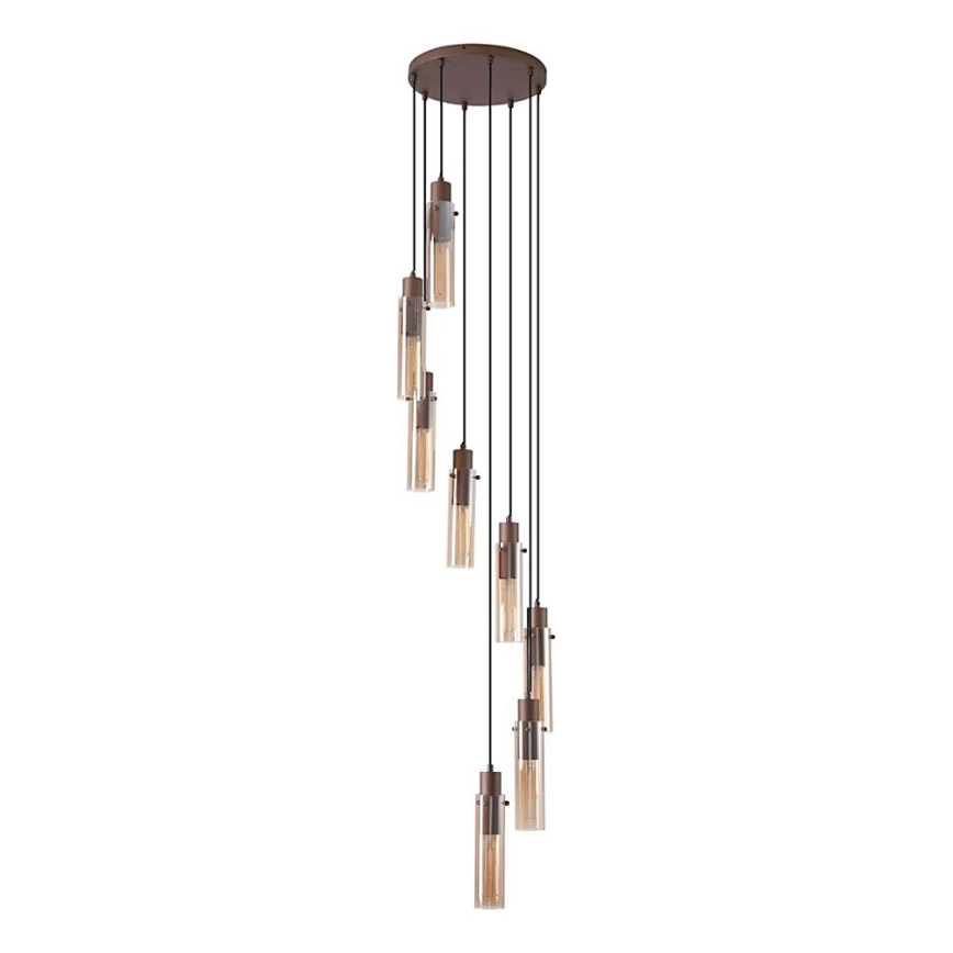 Searchlight - Lámpara colgante con cable SWEDEN 8xE27/60W/230V marrón/ahumado