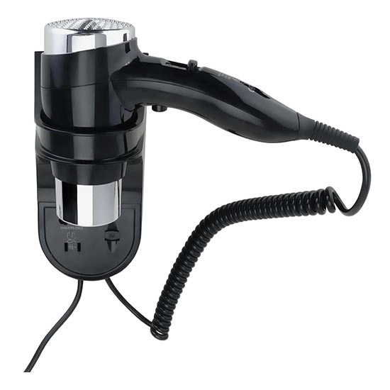 Secador de pelo con soporte 11x24 cm plateado/negro