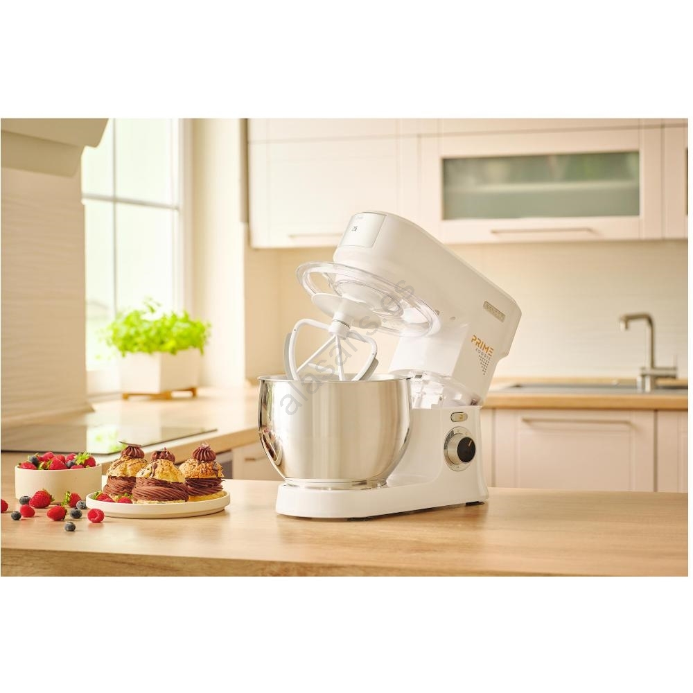 • Robot de cocina con bol giratorio de acero inoxidable.