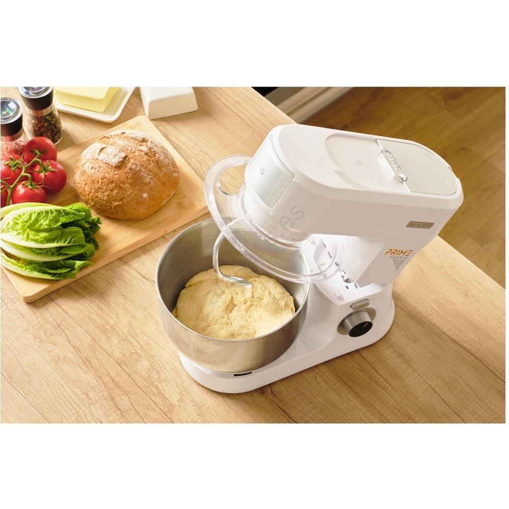 • Recipiente de acero inoxidable de 4,5l para todo tipo de masas (0,8 kg masas densas, 2,2 l masas suaves).