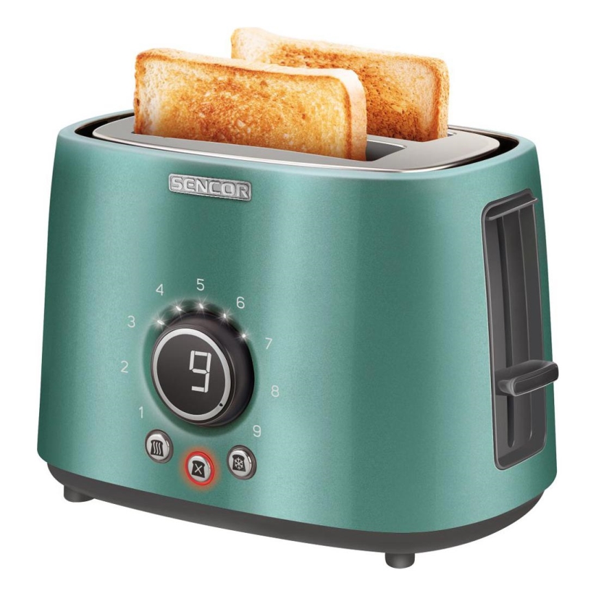 Sencor - Tostadora de dos ranuras con rejilla para calentar 1000W/230V color menta