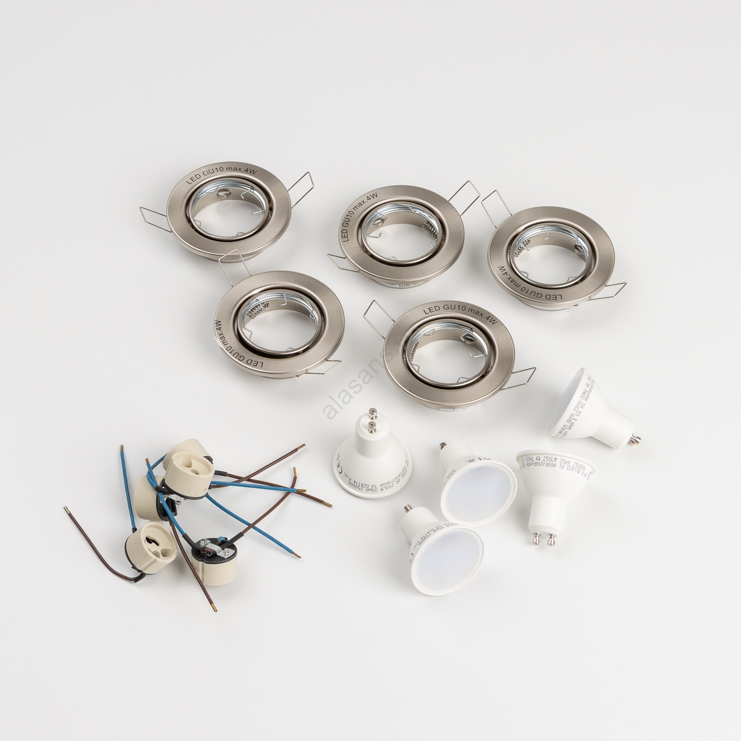 Set de 5 luminarias empotradas para baño 1x GU10/4W/230V IP23, acabado cromo mate