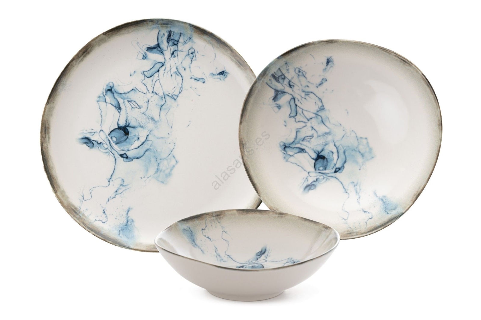 Set de vajilla de 24 piezas blanco/azul/porcelana