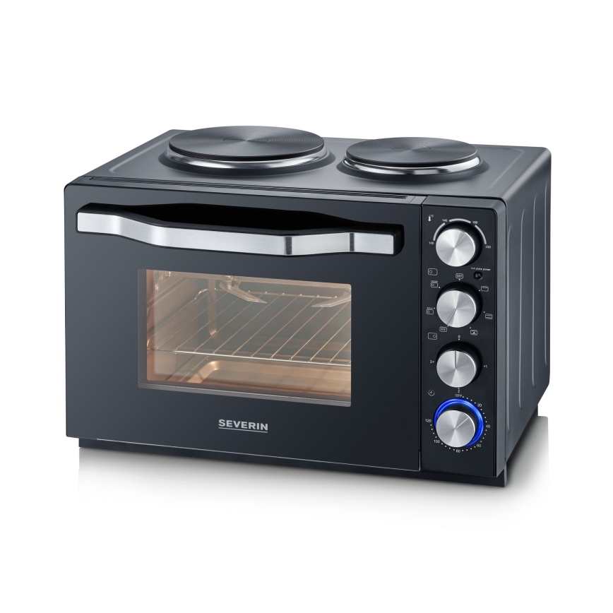 Severin TO 2074 - Horno de convección con grill y placas de cocción eléctricas 2500W/230V 30 l negro