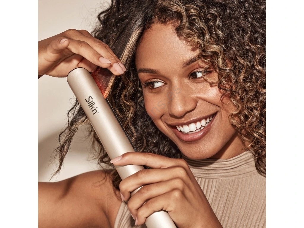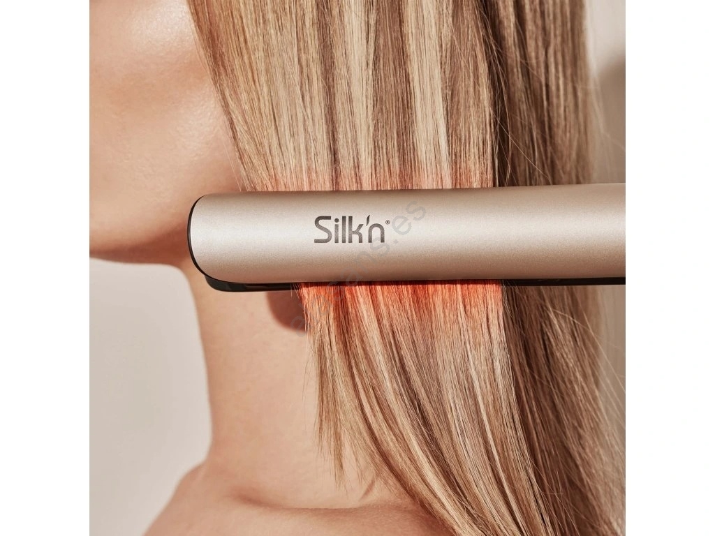 • Silk'n SilkyStraight es una plancha profesional para el cabello que utiliza tecnología infrarroja y emite iones negativos para alisar y disciplinar el cabello de forma suave, minimizando el daño y el encrespamiento.