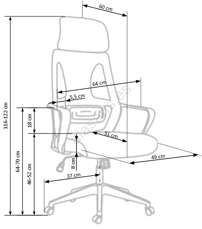 • Gracias al ajuste de la altura del asiento y la inclinación del respaldo, la silla se adapta fácilmente a tu cuerpo y a tu forma de sentarte.