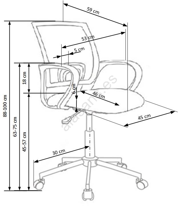 • Gracias al ajuste de altura del asiento, la silla se adapta fácilmente a su cuerpo y a su estilo al sentarse.
