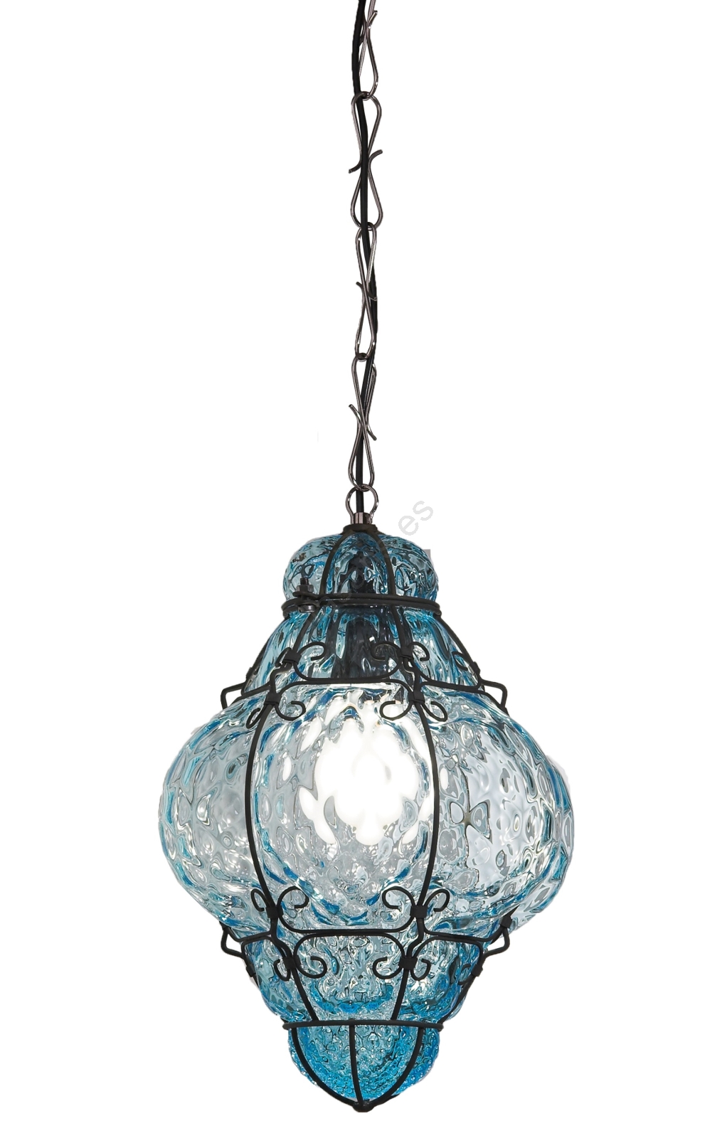 SIRU- Lámpara colgante con cadena CLASSIC 1xE27/60W/230V diá. 30 cm azul/negro Vidrio veneciano