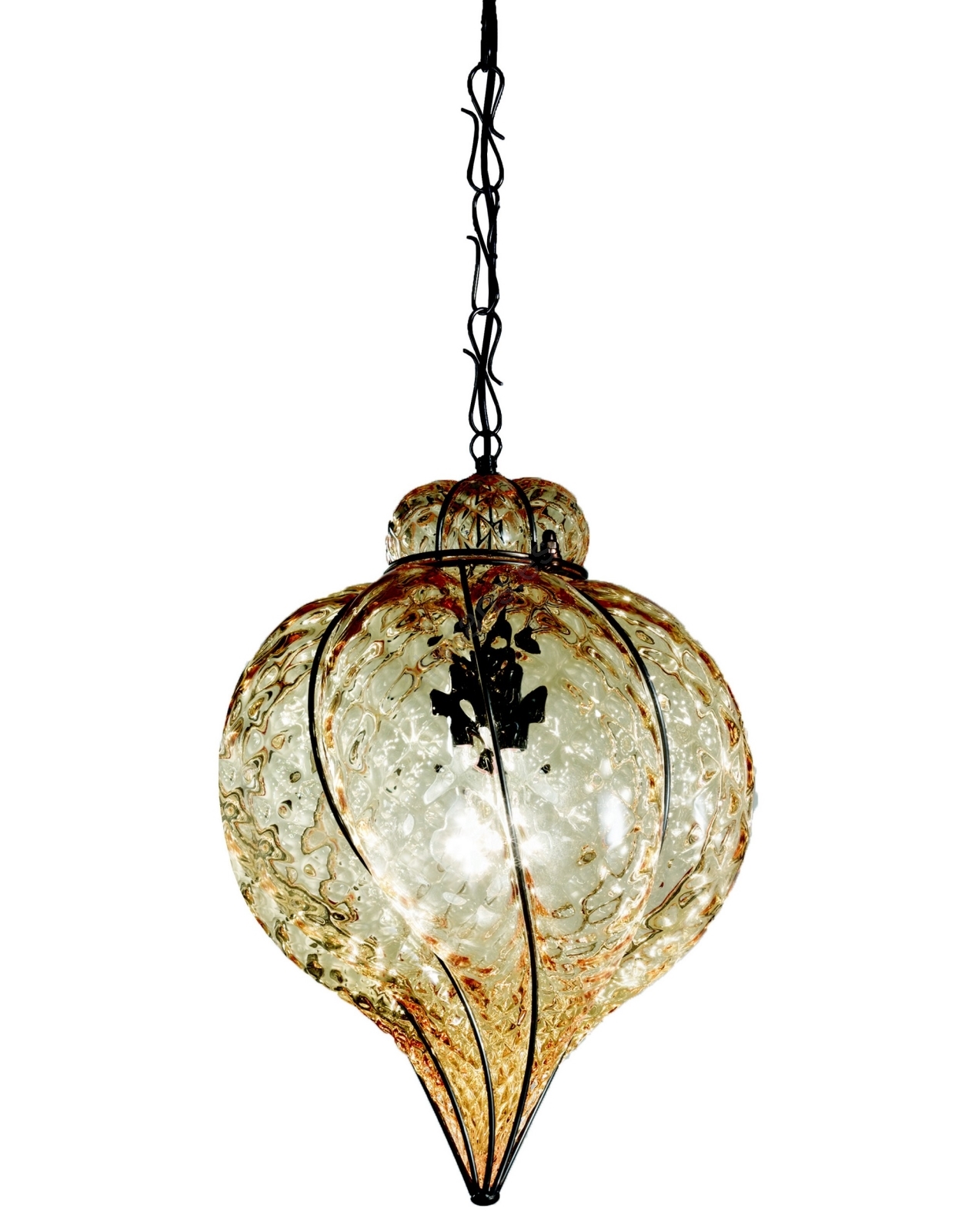 SIRU - Lámpara colgante con cadena GOCCIA 1xE27/60W/230V diá. 25 cm beige/marrón Vidrio veneciano