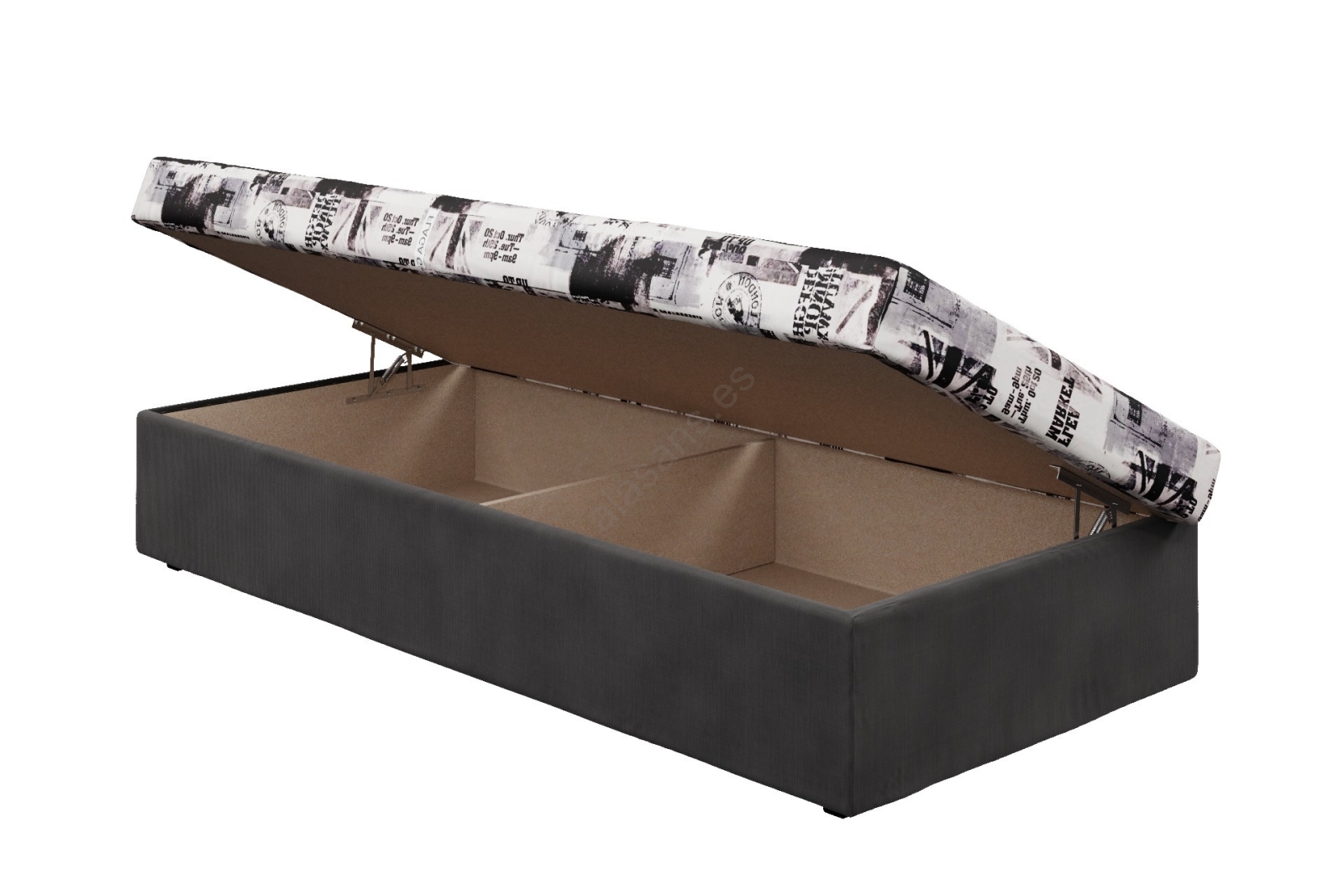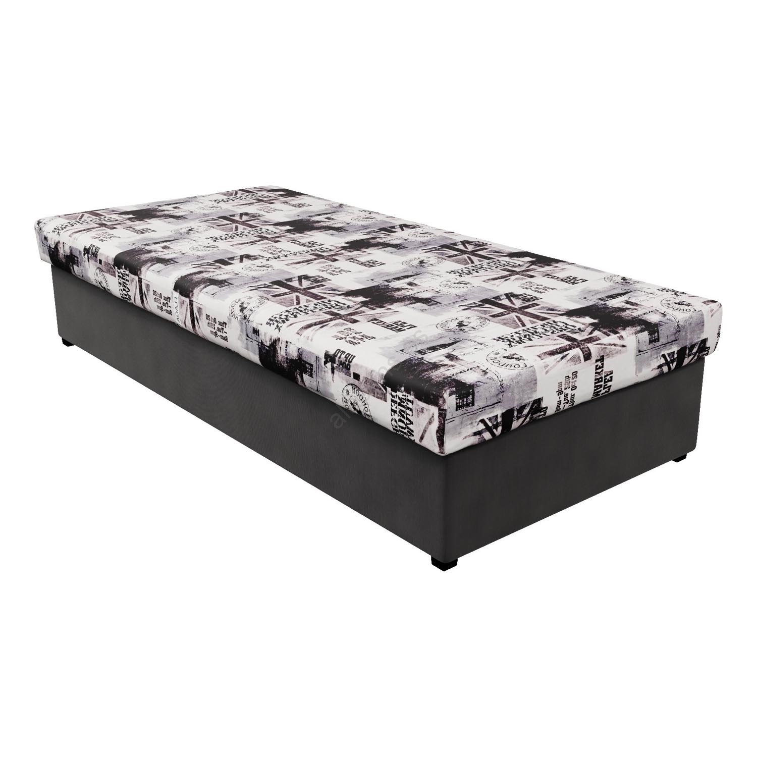 Cama NOE 90x200 con colchón de muelles y amplio canapé de almacenamiento, gris/negro