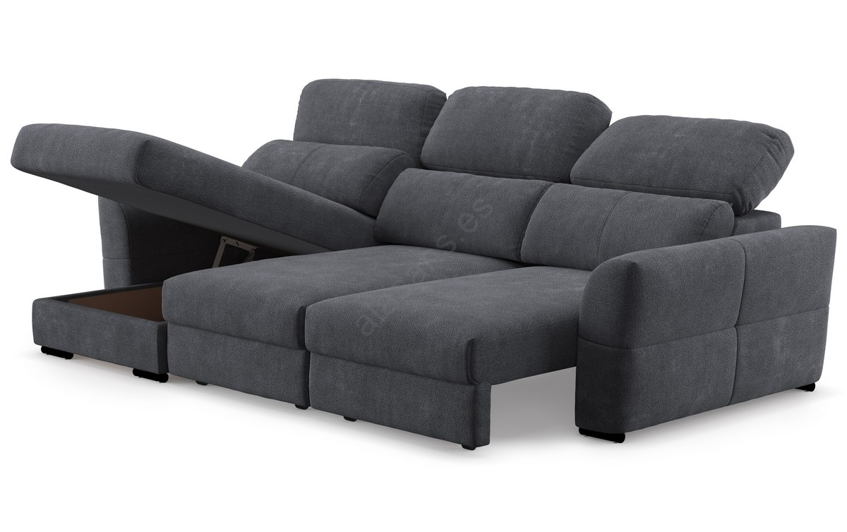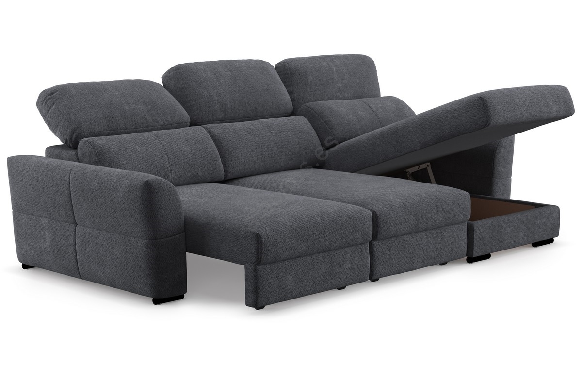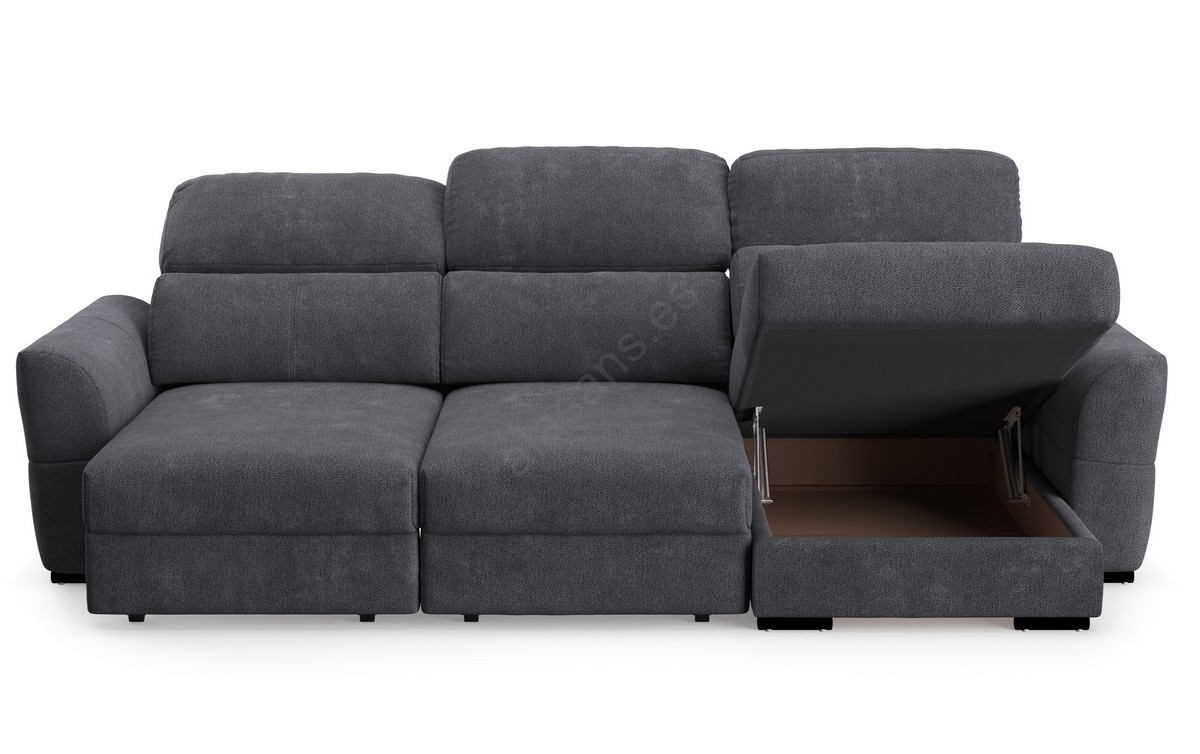 • Sofá esquinero reversible de tres plazas, convertible en cama, con arcón de almacenamiento TRENTO antracita