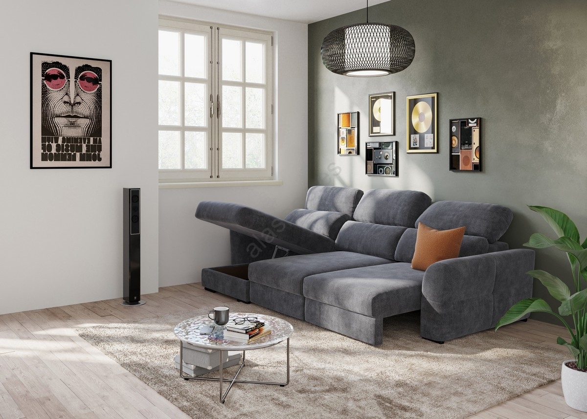 • Sofá cama esquinero versátil de 3 plazas con espacio de almacenamiento TRENTO gris