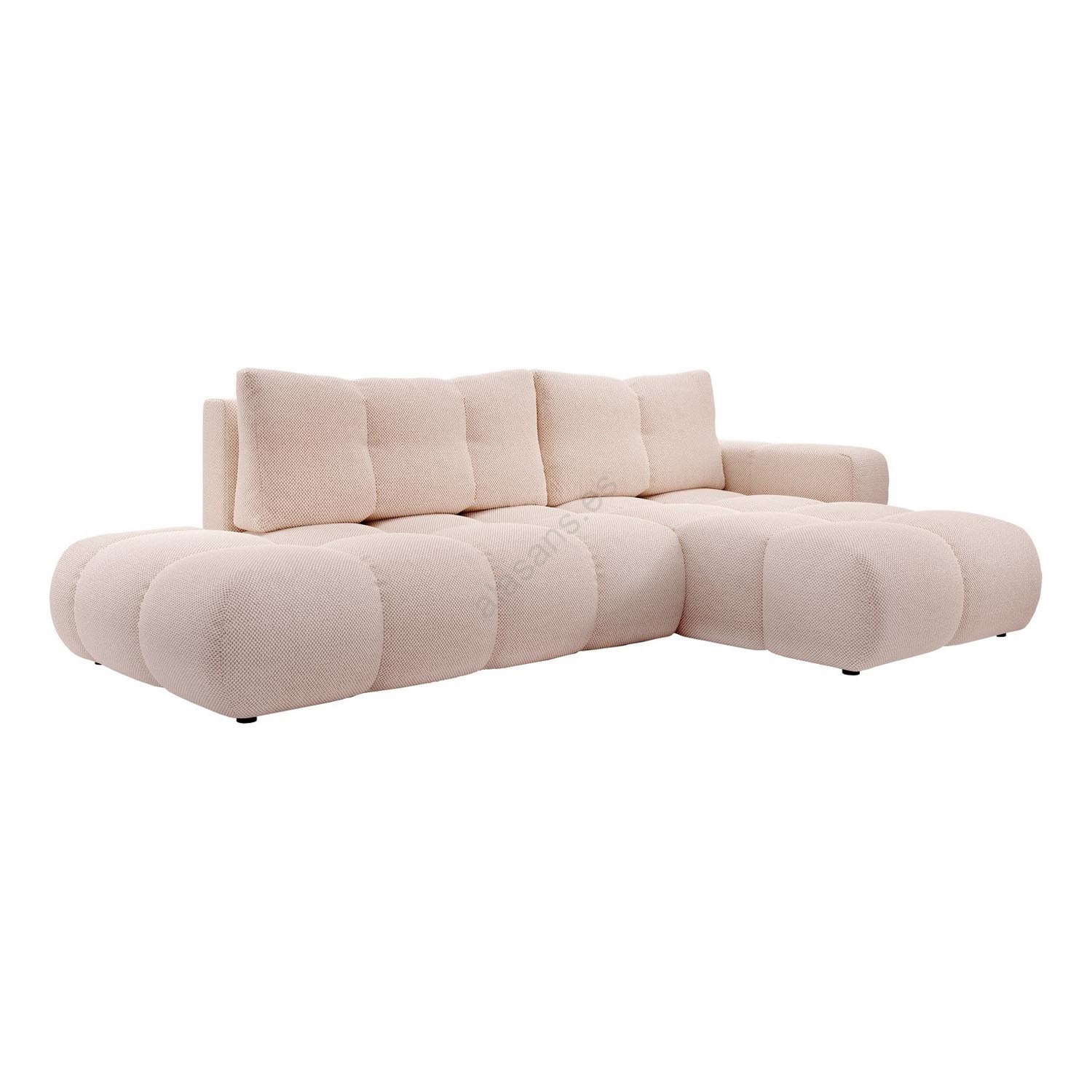 Sofá cama esquinero tapizado en L ALMADA, con arcón, orientación derecha, rosa