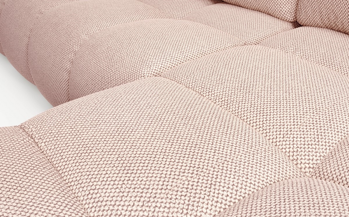 • Sofá esquinero tapizado ALMADA en L, convertible en cama, con arcón de almacenaje, orientación derecha, rosa