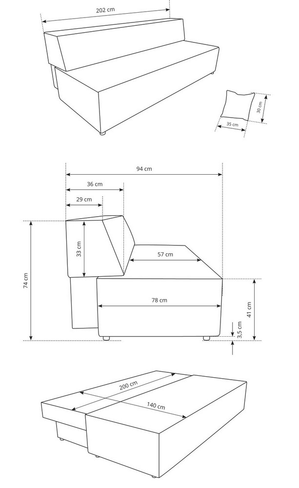 • Las elegantes patas de madera negras (altura 16 cm) confieren al sofá un aspecto moderno y, al mismo tiempo, garantizan estabilidad y larga durabilidad.