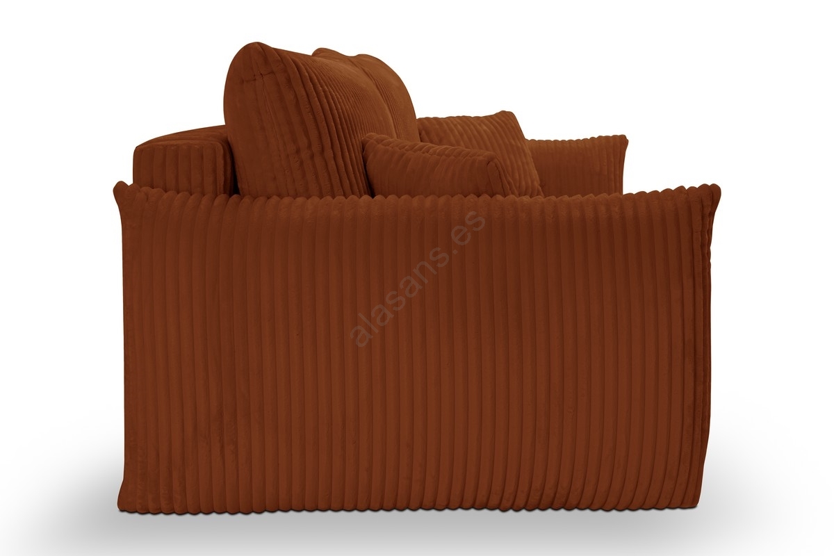 • La parte trasera del sofá luce una tapicería de calidad, lo que permite colocarlo libremente en el espacio.
