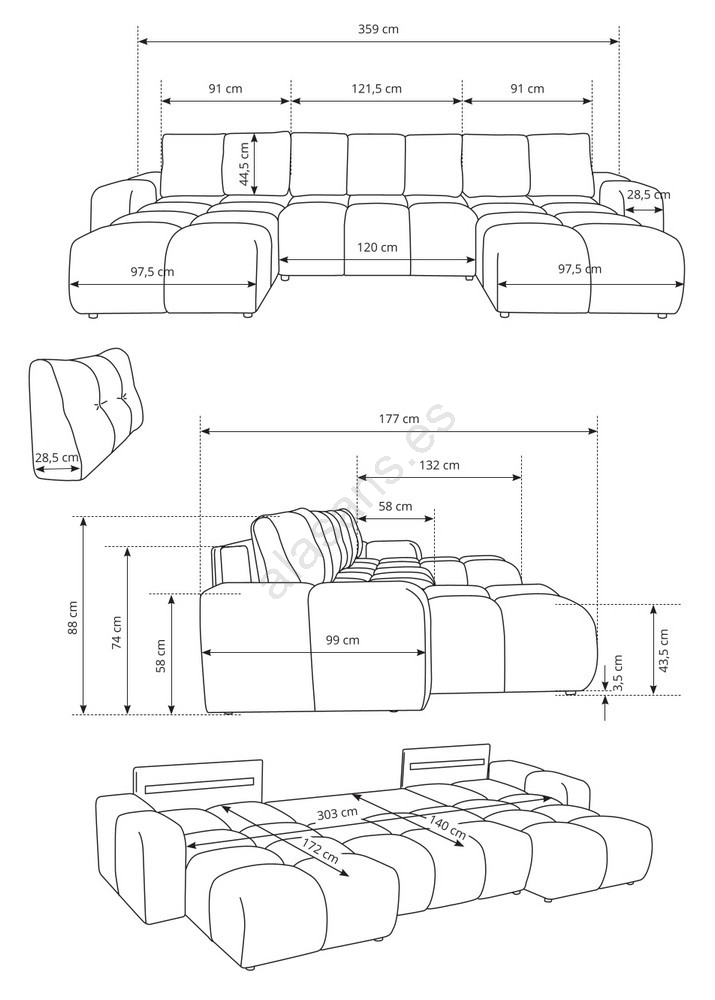 • Sofá cama moderno en U ALMADA es la opción ideal para quien busca una combinación de estilo, confort y funcionalidad.