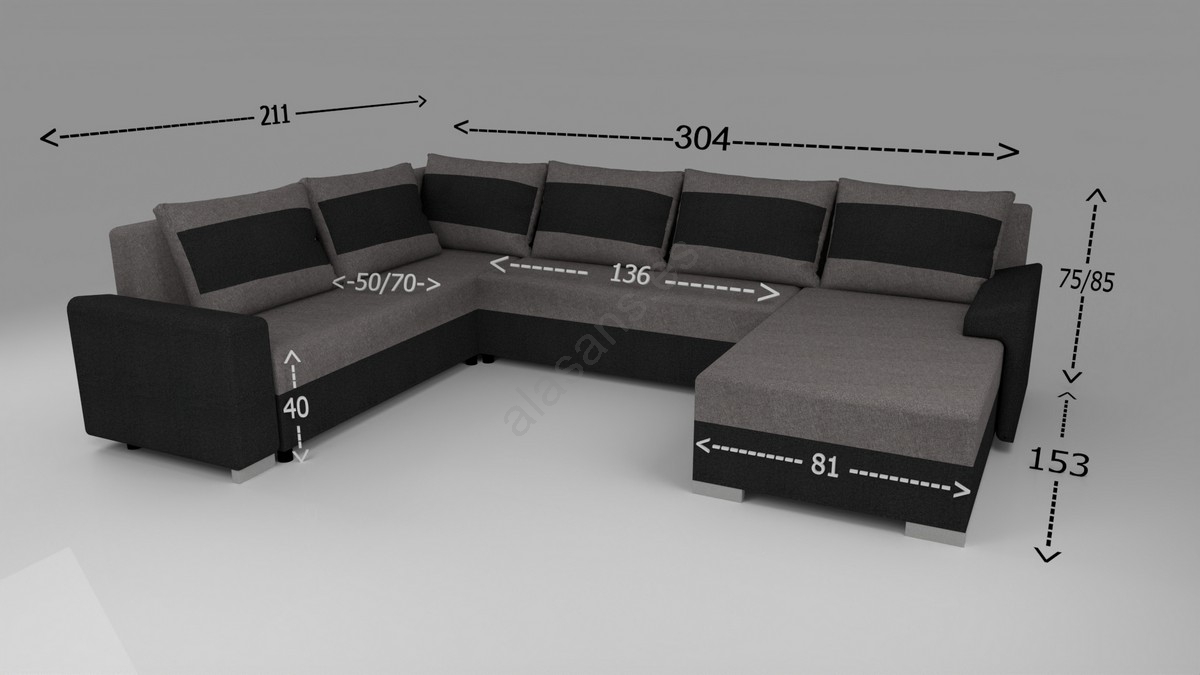• Sofá cama tapizado en U OXFORD, versátil y convertible, negro/gris
