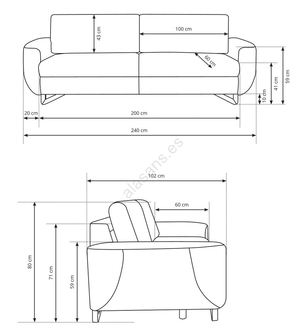 • La profundidad de asiento de 60 cm ofrece suficiente espacio para una postura relajada y ergonómica.