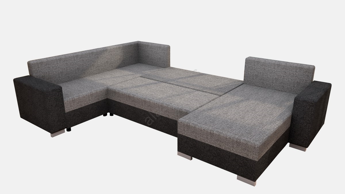 • Sofá cama tapizado en U YORK, reversible, gris/negro