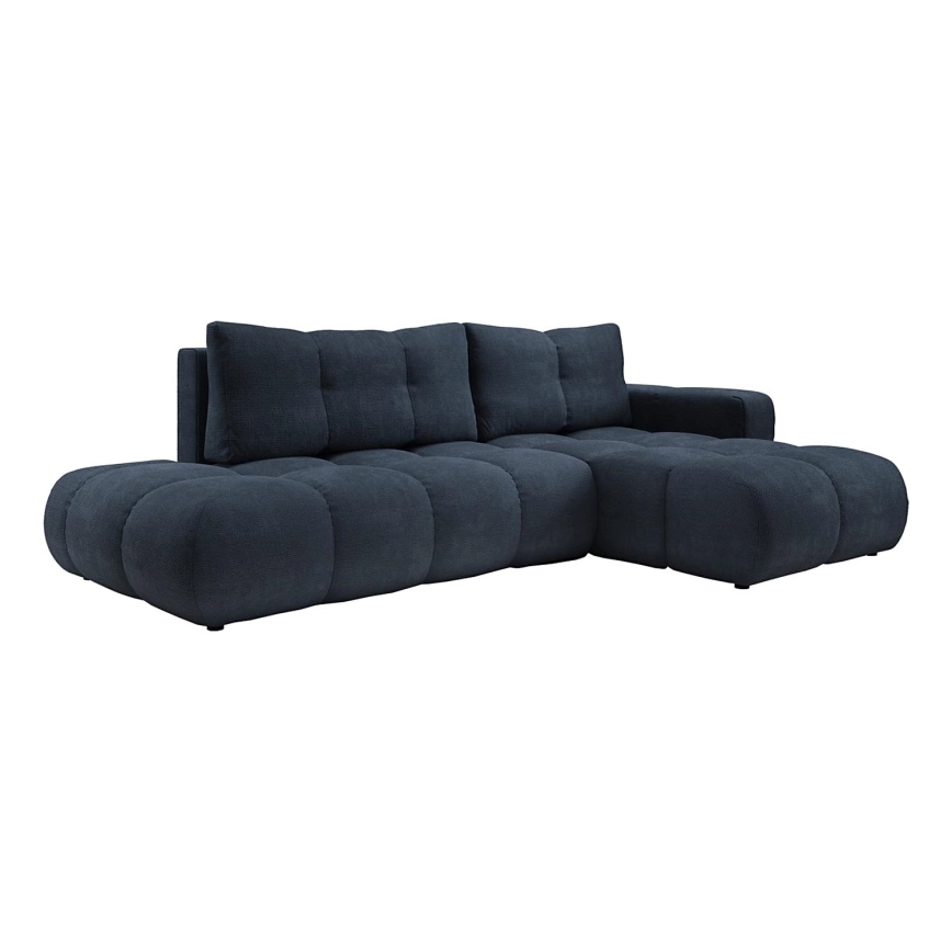 • Sofá esquinero tapizado ALMADA en L, convertible en cama, con arcón de almacenaje, orientación derecha — azul