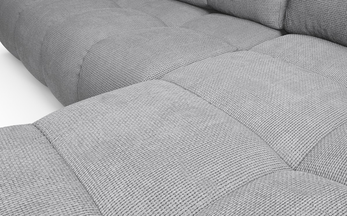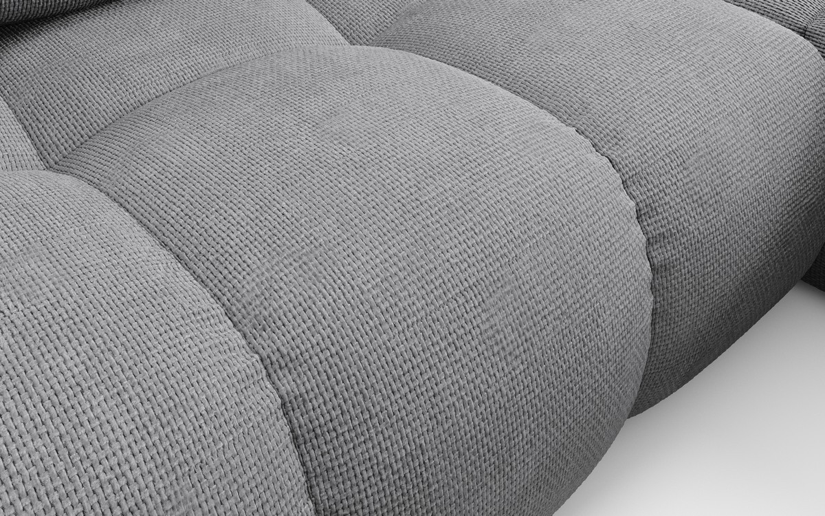 • El tapizado es muy resistente a la abrasión (45 000–60 000 ciclos Martindale) y, gracias al tratamiento hidrófugo, también repele el agua, lo que lo convierte en una elección ideal para el uso diario en el hogar, incluidas las familias con niños y mascotas.