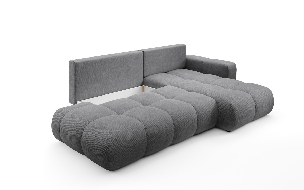Sofá esquinero tapizado en L ALMADA, convertible con arcón, orientación derecha, gris