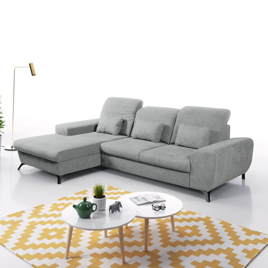 • Sofá cama esquinero tapizado en L con arcón ALTA, izquierdo, gris