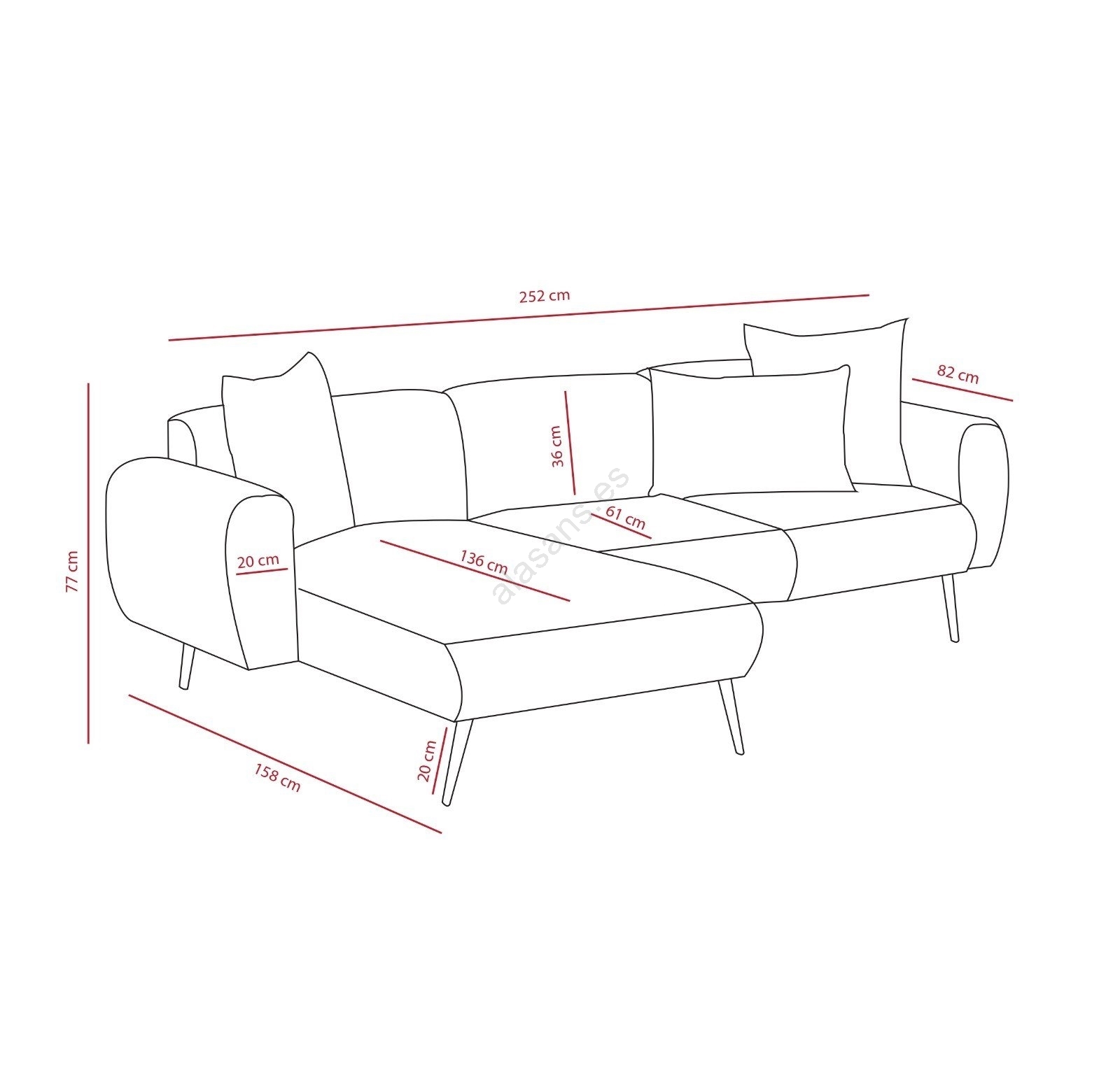 • Sus dimensiones encajan perfectamente en la mayoría de las habitaciones, permitiéndole crear un espacio funcional y acogedor.
