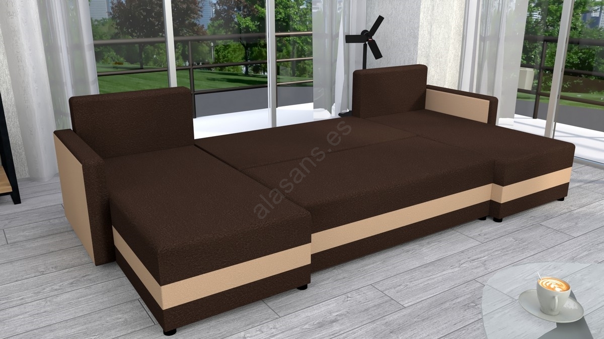 • Sofá esquinero tapizado en U BRISTOL, versátil y convertible, marrón/beige