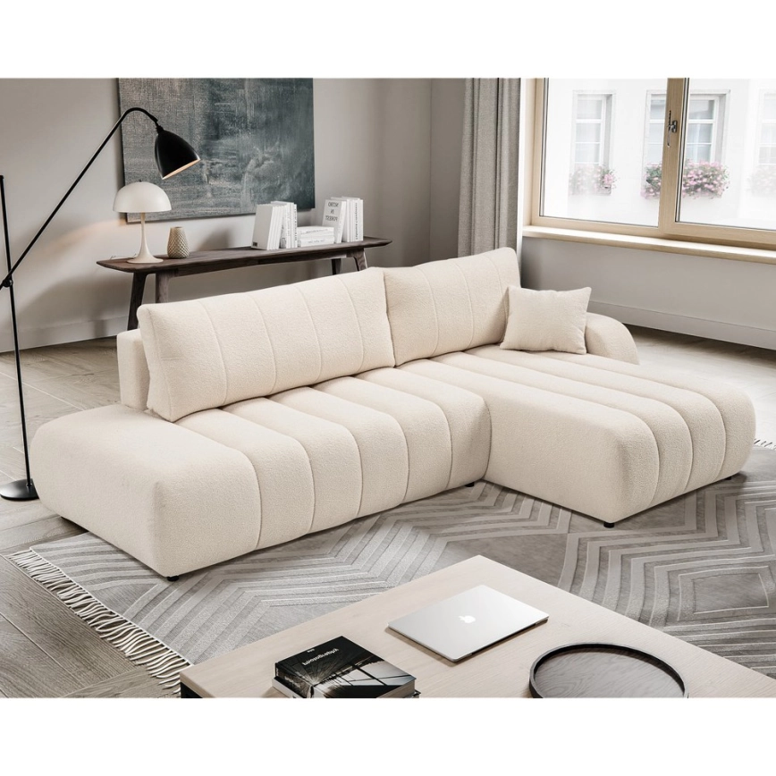 • Sofá cama esquinero en L DESIO con arcón, orientación izquierda, beige