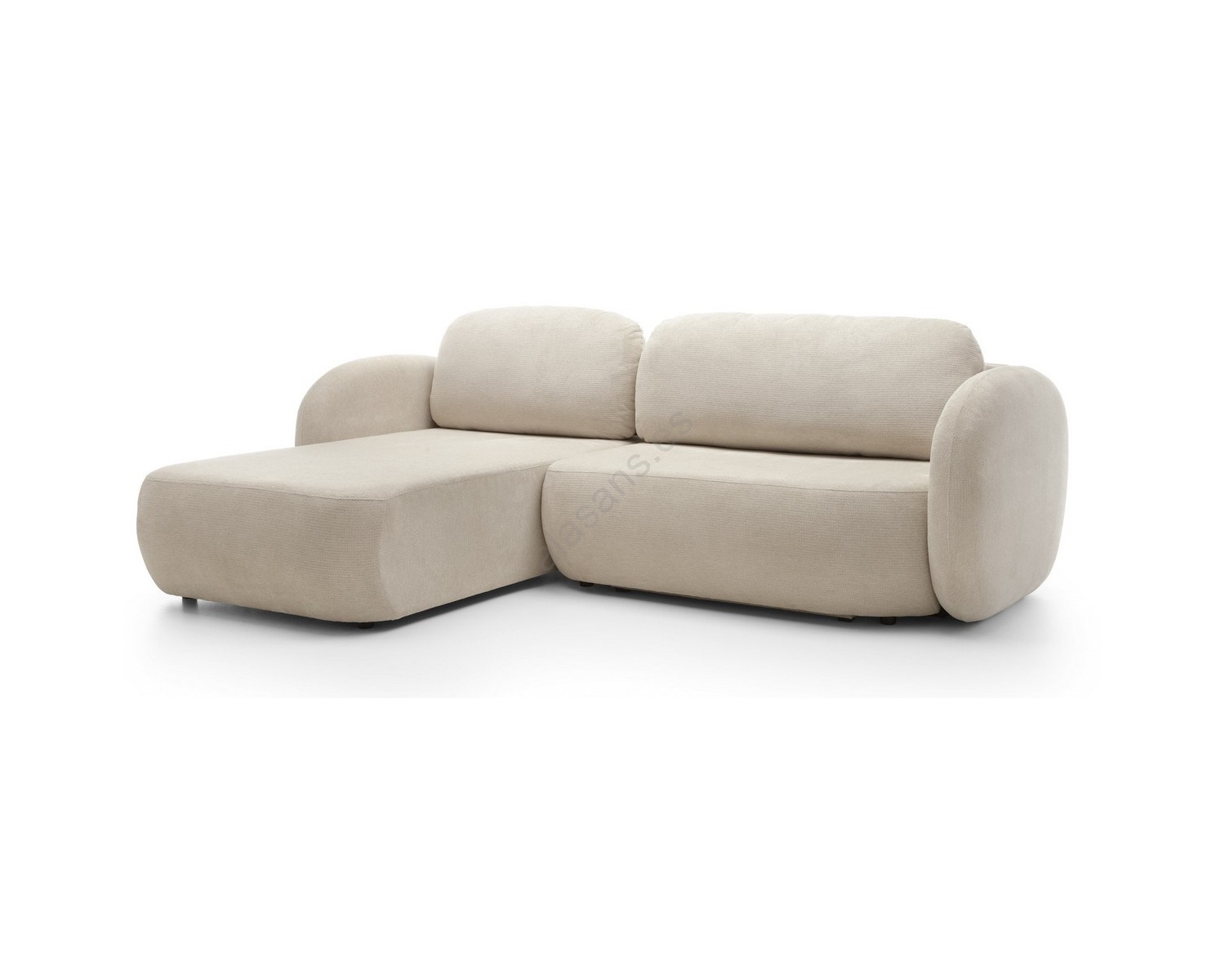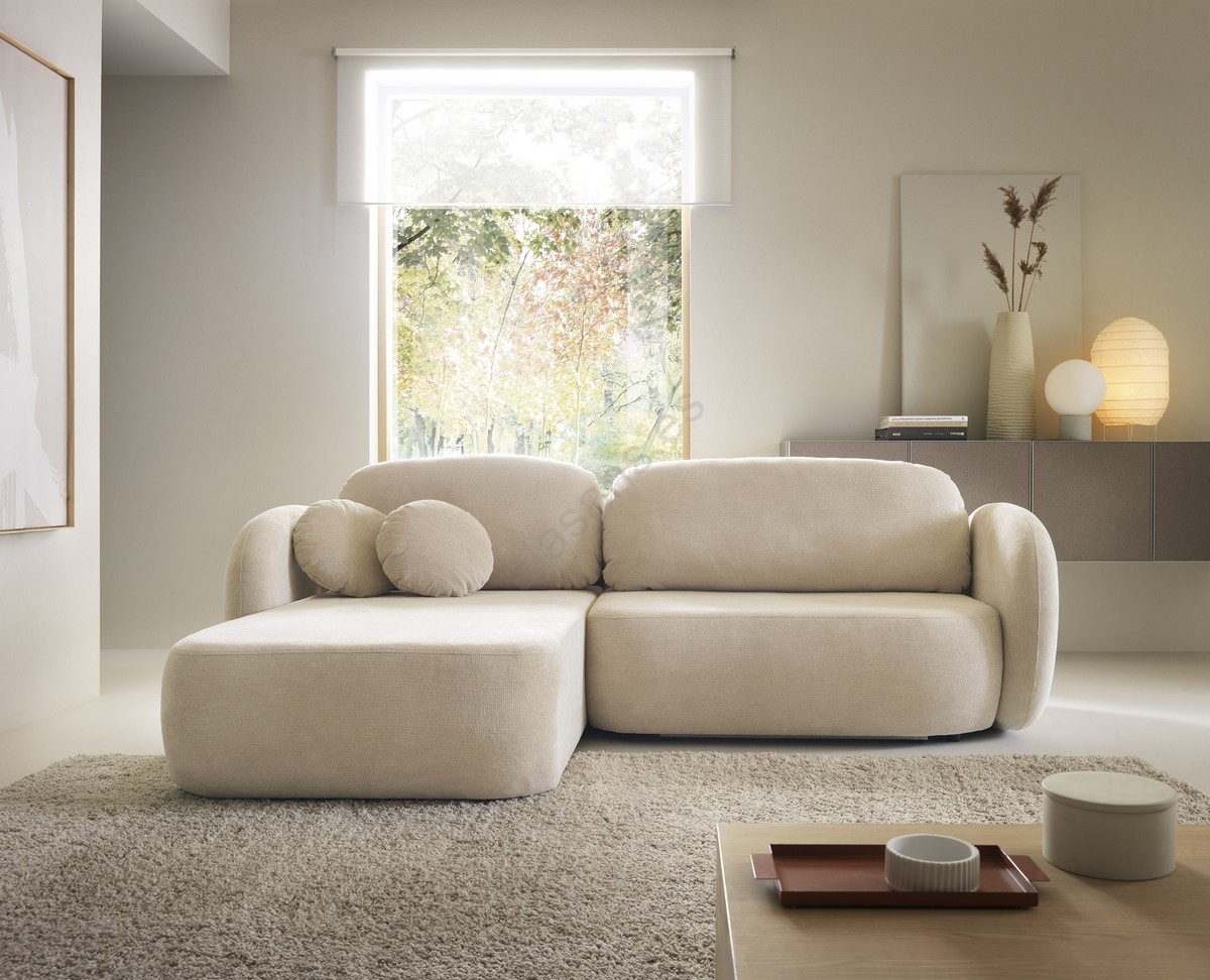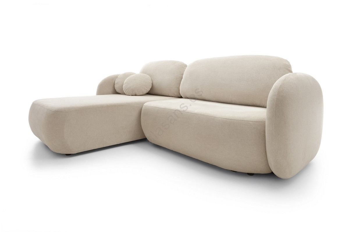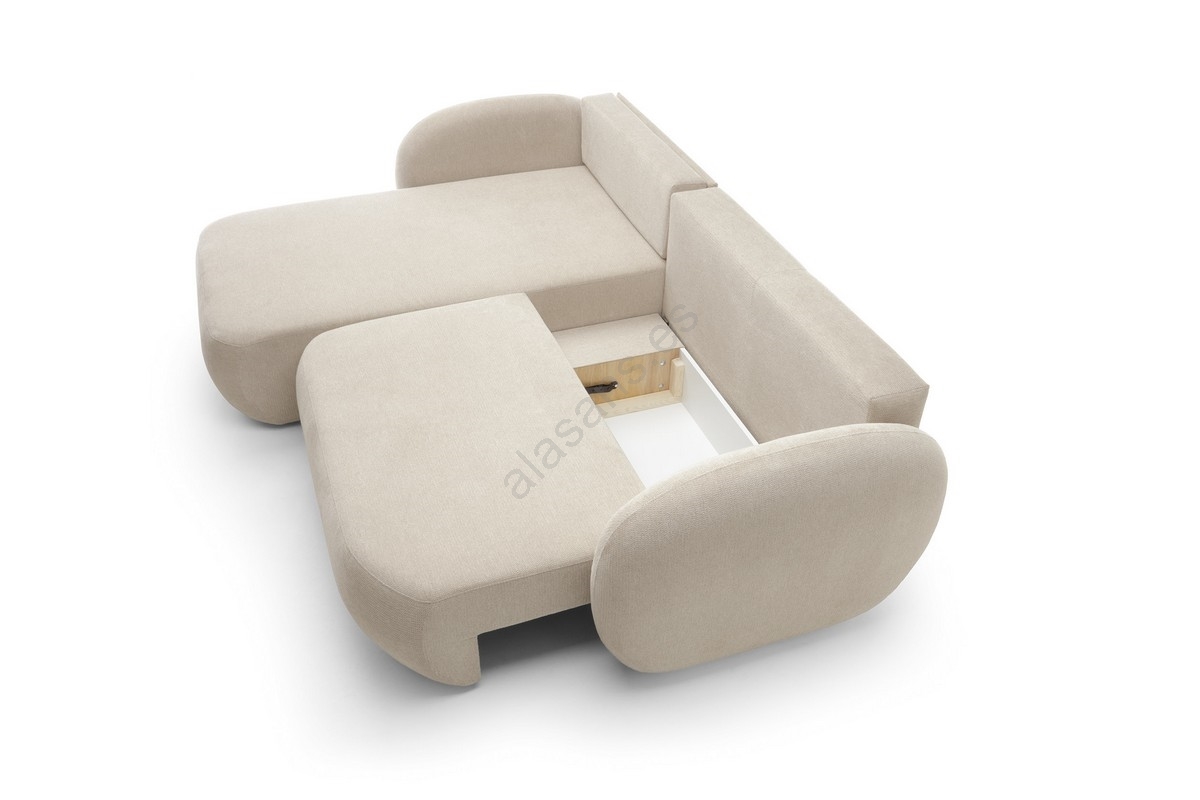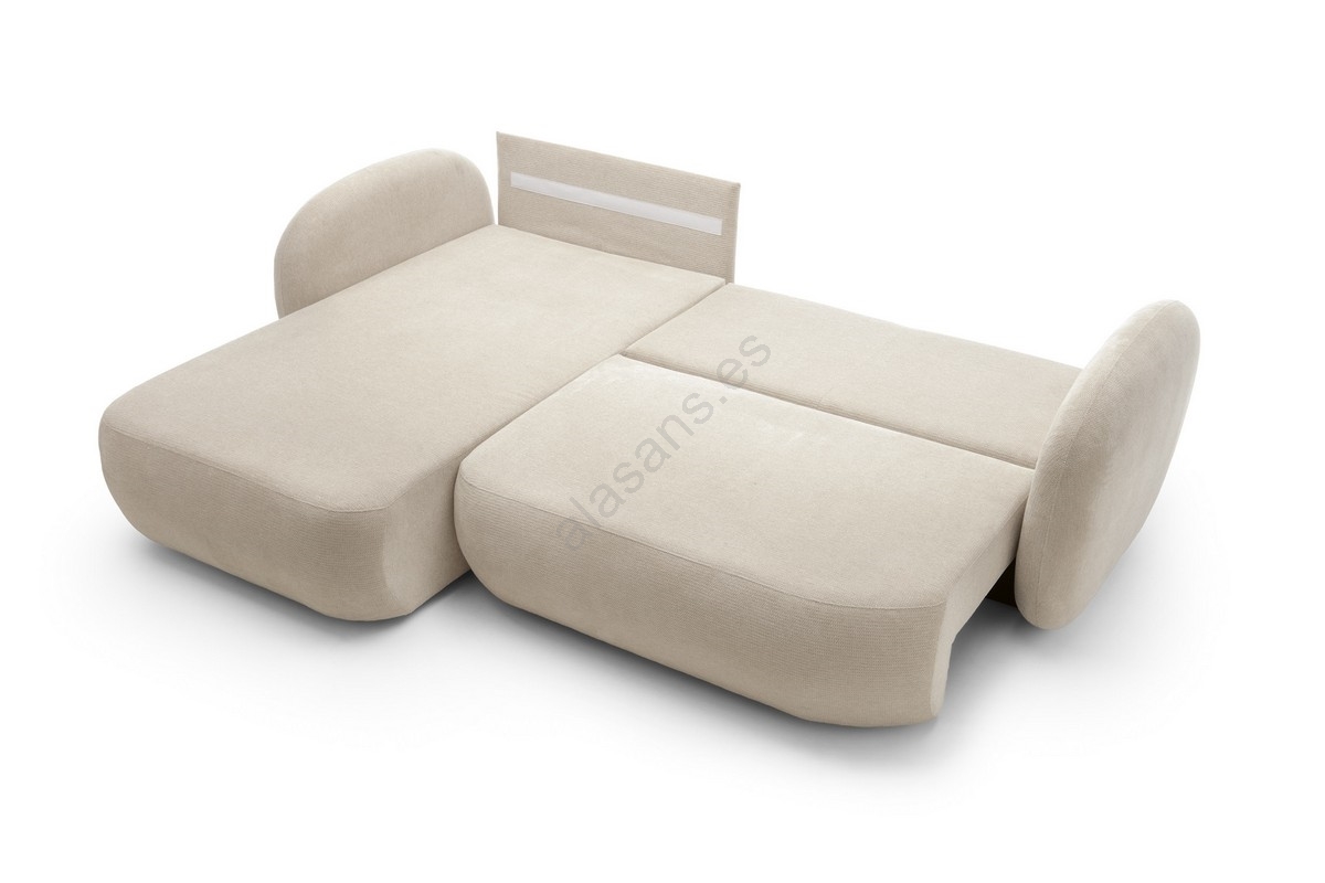 • Sofá cama esquinero en L OLBIA, izquierdo, beige, con arcón