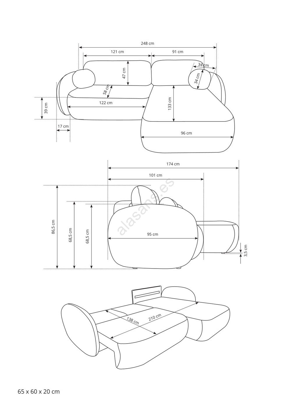 • Caja n.º 3: 63 x 98 x 70 cm (23,5 kg).