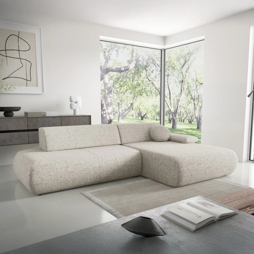 • Sofá cama esquinero en L PRATO con arcón, versión izquierda, beige
