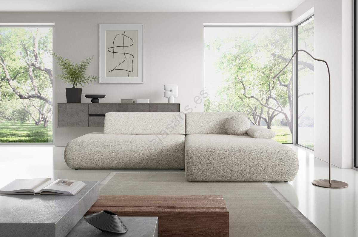 Sofá cama esquinero PRATO en L con espacio de almacenamiento, orientación derecha, beige