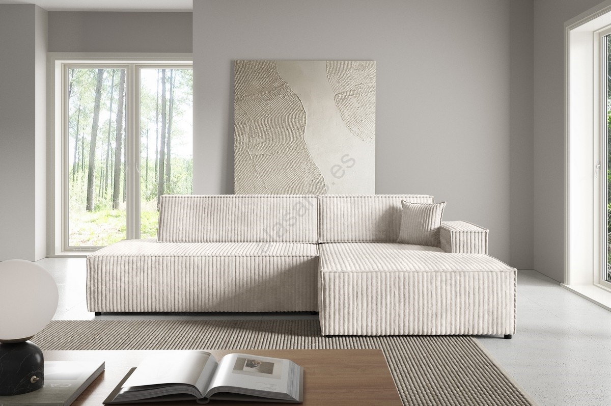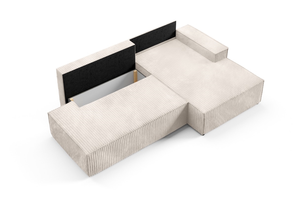 Sofá esquinero convertible en L TERAMO con arcón, versión derecha, beige