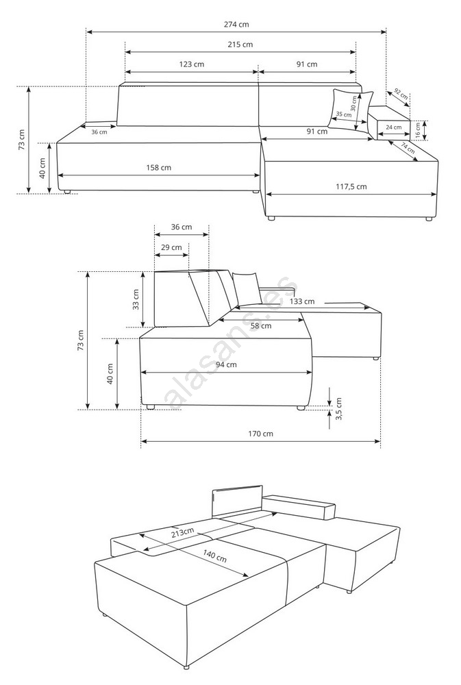 • El sofá dispone de un amplio compartimento de almacenamiento para guardar ropa de cama y otros artículos de temporada.