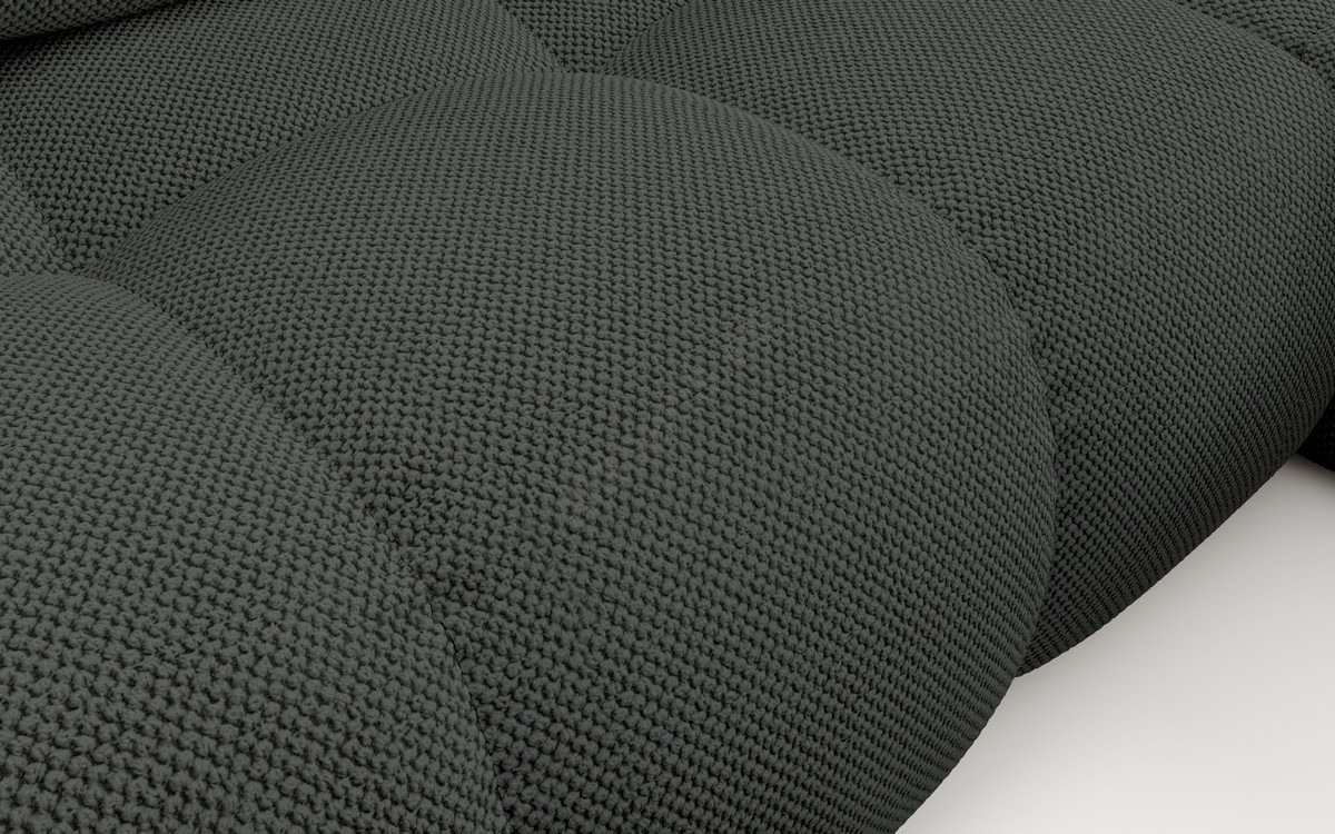 • La tapicería es muy resistente a la abrasión (45 000–60 000 MD) y, gracias al tratamiento repelente al agua, también repele el agua, lo que lo convierte en la elección ideal para el uso diario en el hogar, incluyendo hogares con niños y mascotas.