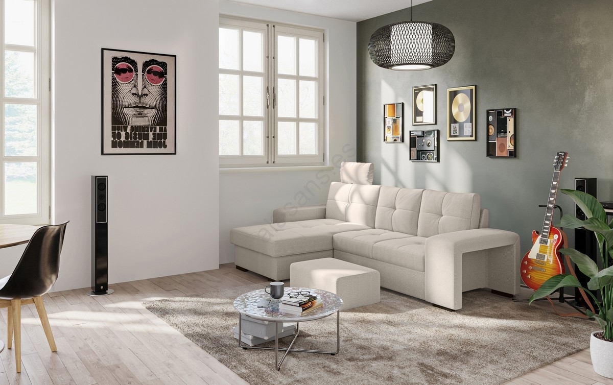 • Sofá cama con arcón y puf PALERMO gris claro, versión derecha