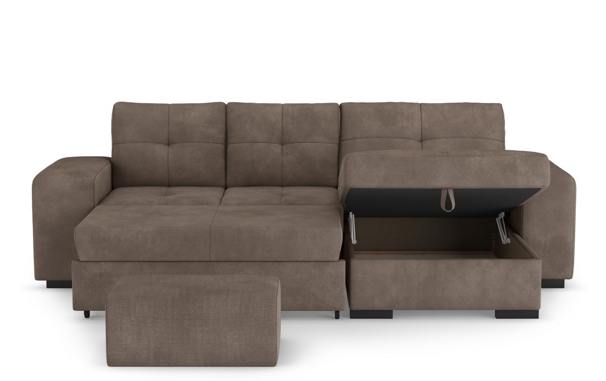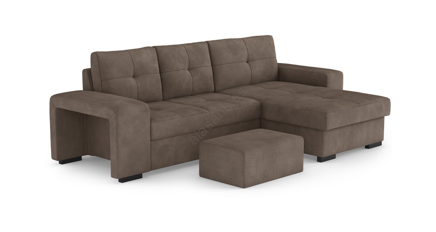 Sofá cama PALERMO marrón con arcón y taburete, orientación derecha