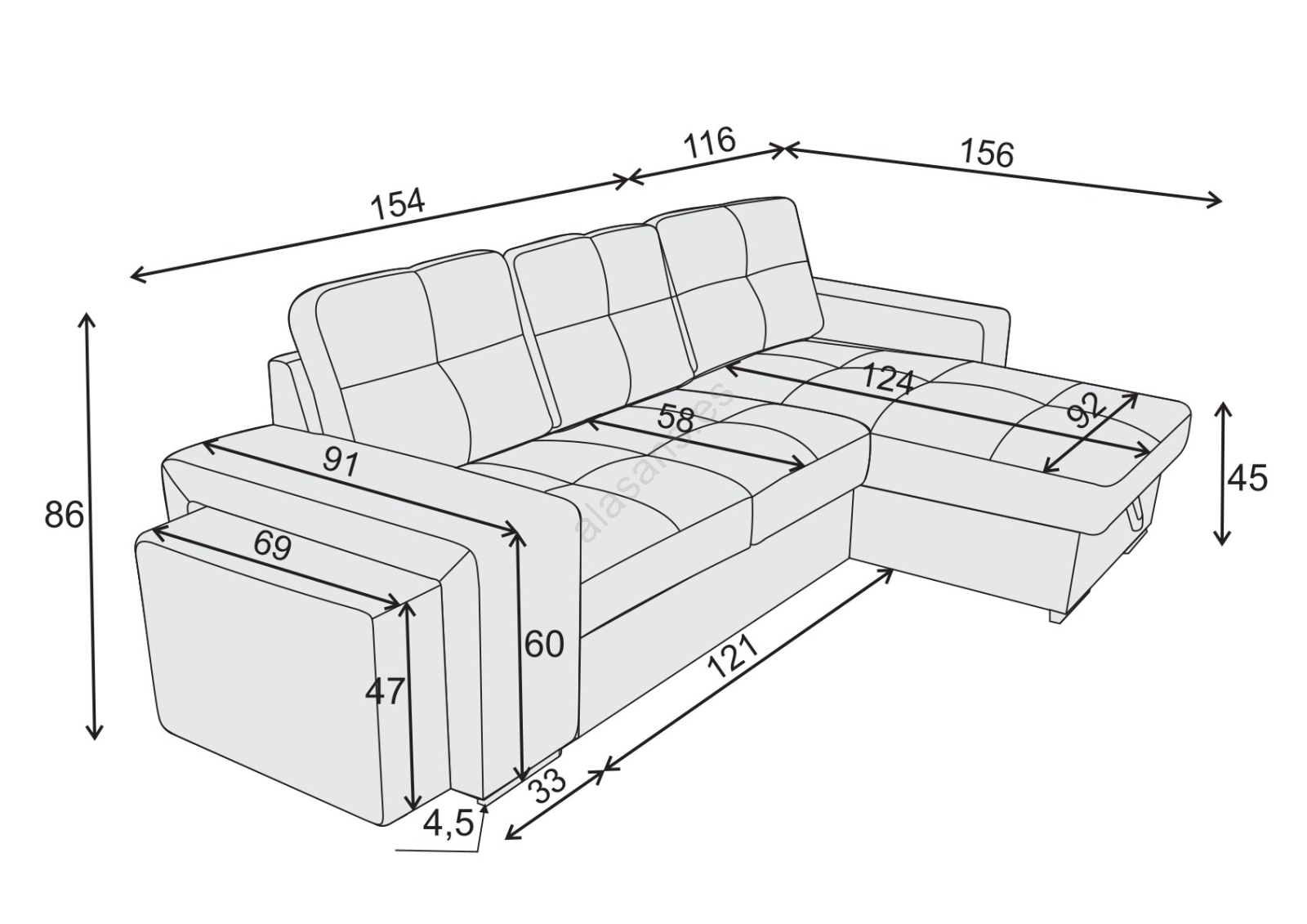 Sofá PALERMO - diseño práctico con amplia cama y espacio de almacenamiento.