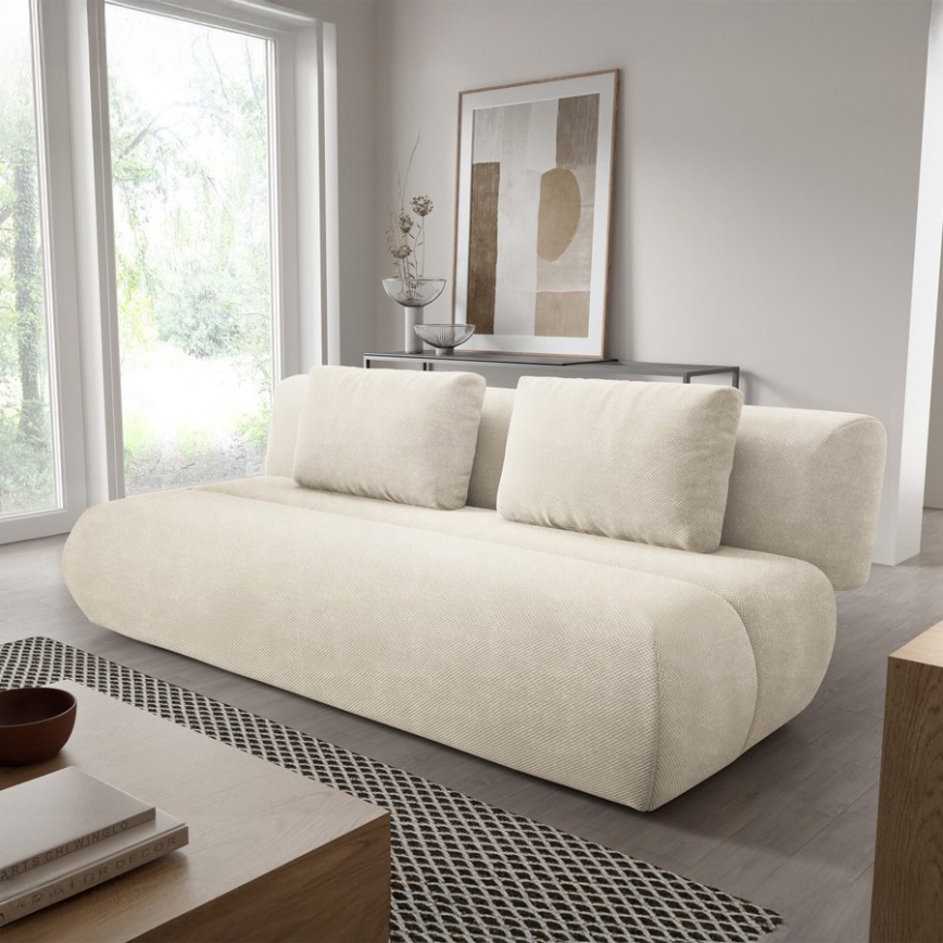 Sofá cama FANO de tres plazas, color crema