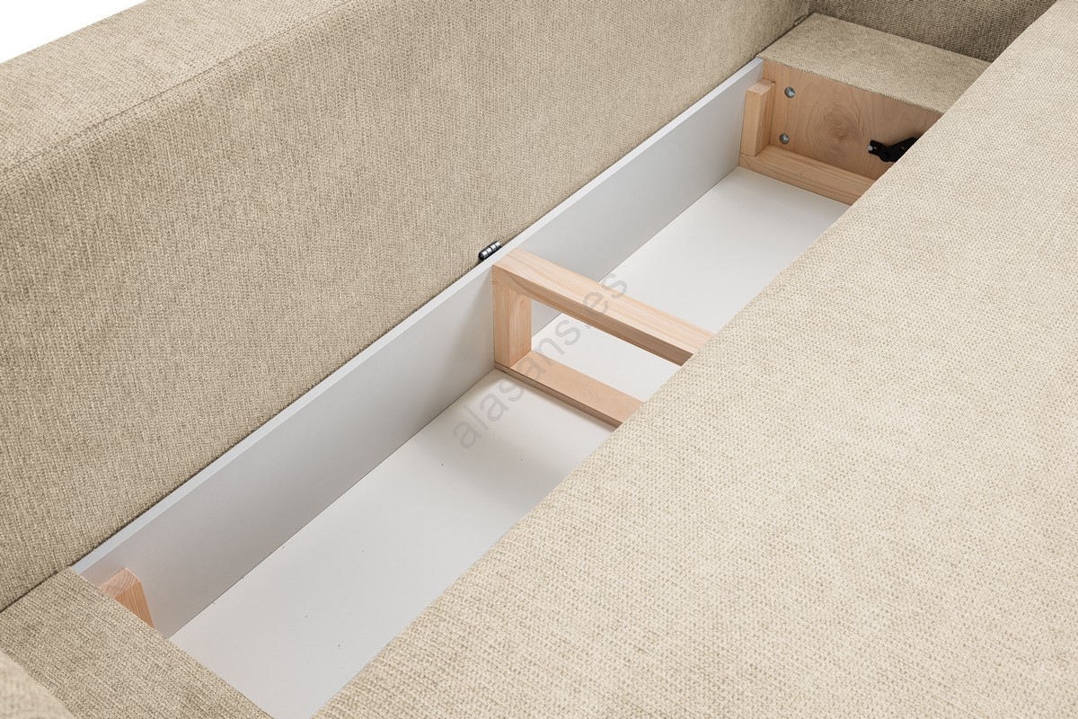 • El sofá dispone de un amplio espacio de almacenamiento para guardar ropa de cama y otros artículos de temporada.