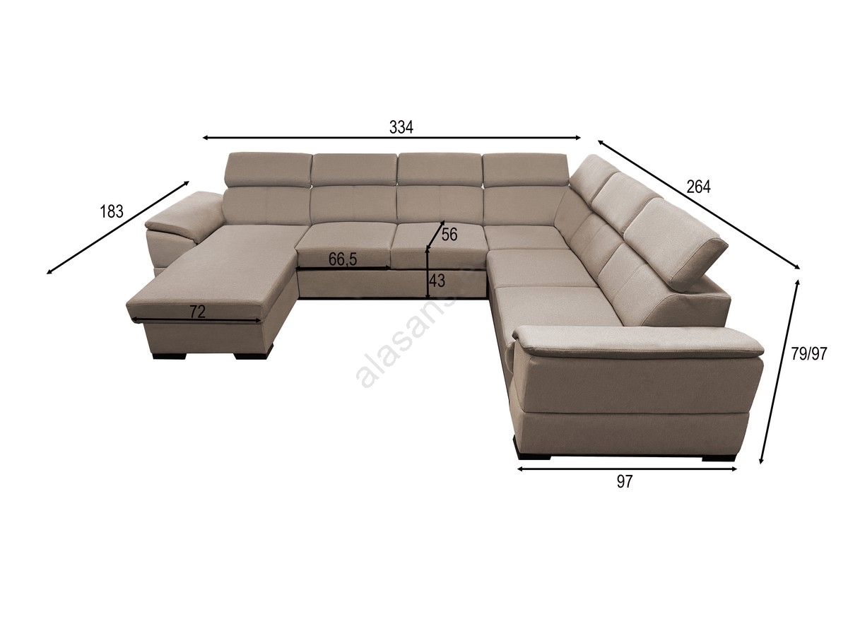 • Sofá cama con esquina universal en U y arcón GRANADA beige