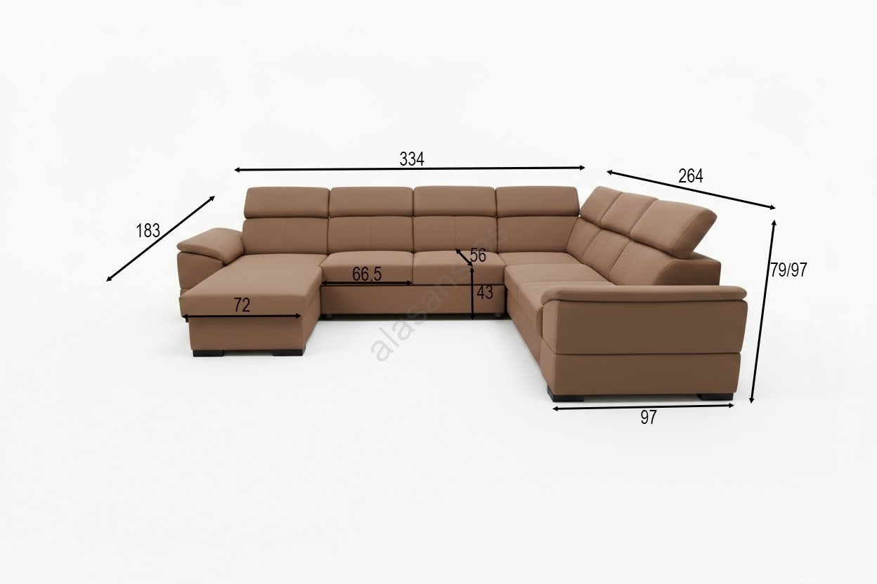 Sofá cama esquinero en U con rincón reversible y espacio de almacenamiento GRANADA marrón