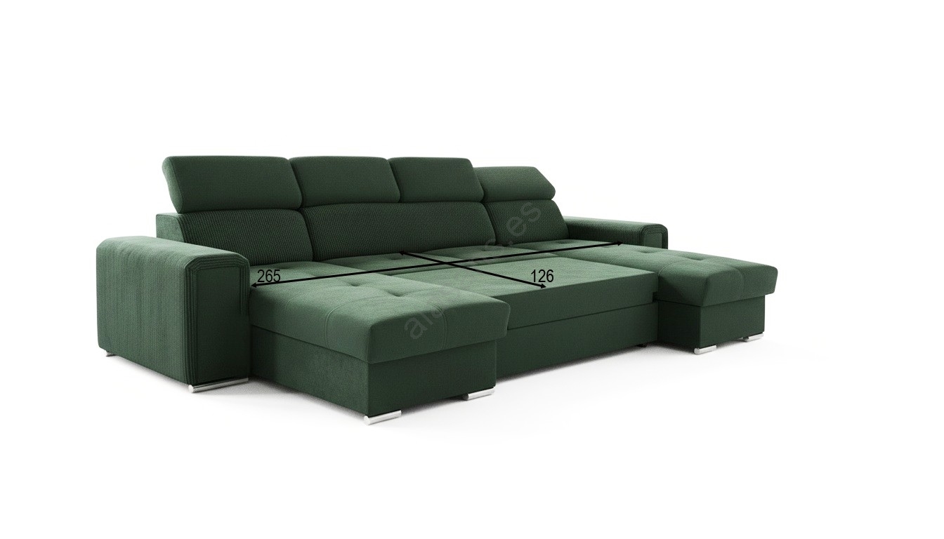 • Sofá cama extensible con chaiselongue en forma de U universal con espacio de almacenamiento SALVADA verde