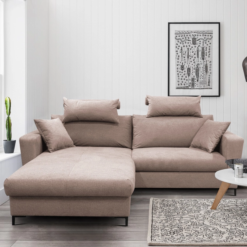 • Sofá esquinero cama en L HORTA con arcón, orientación izquierda, rosa