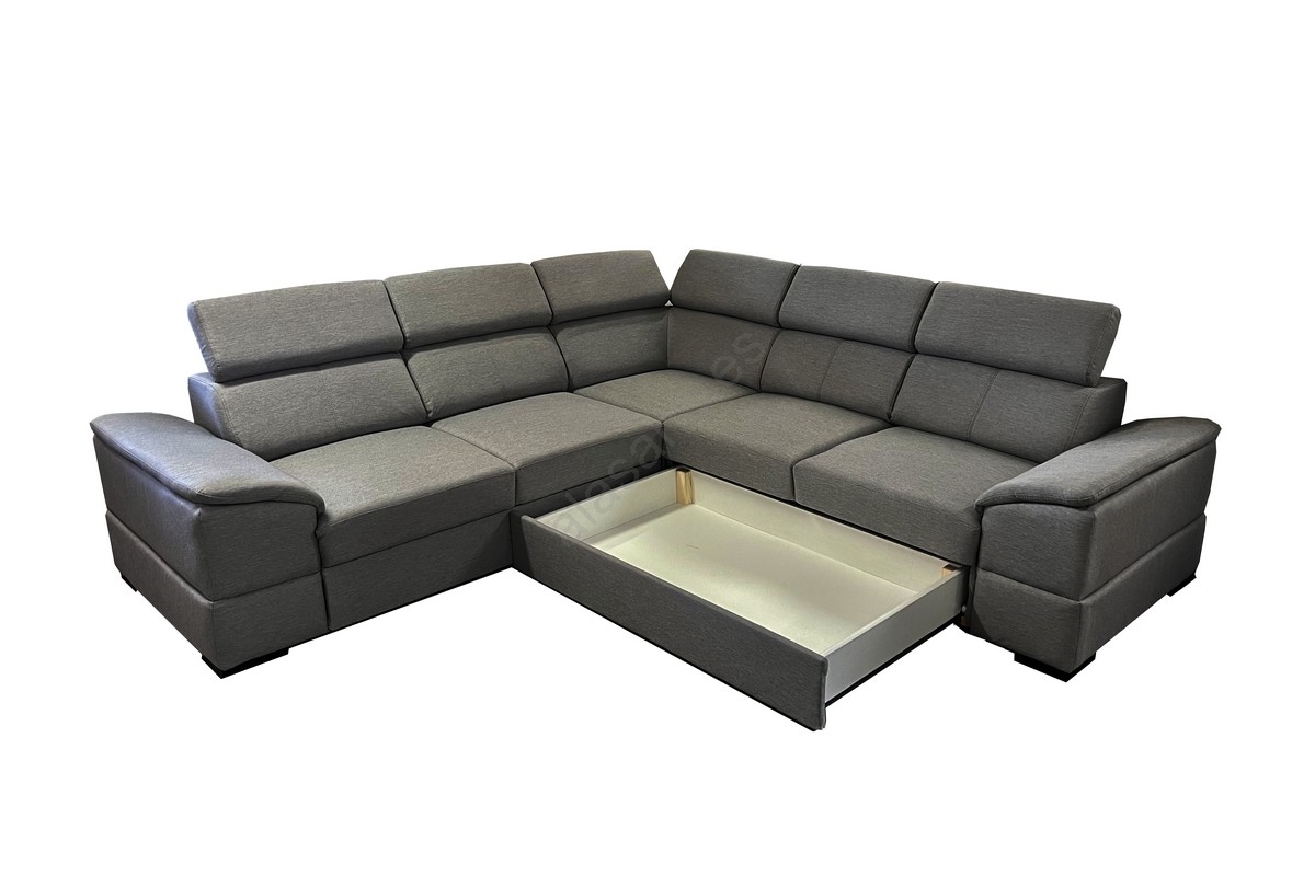 • Sofá esquinero reversible con cama y arcón GRANADA gris oscuro