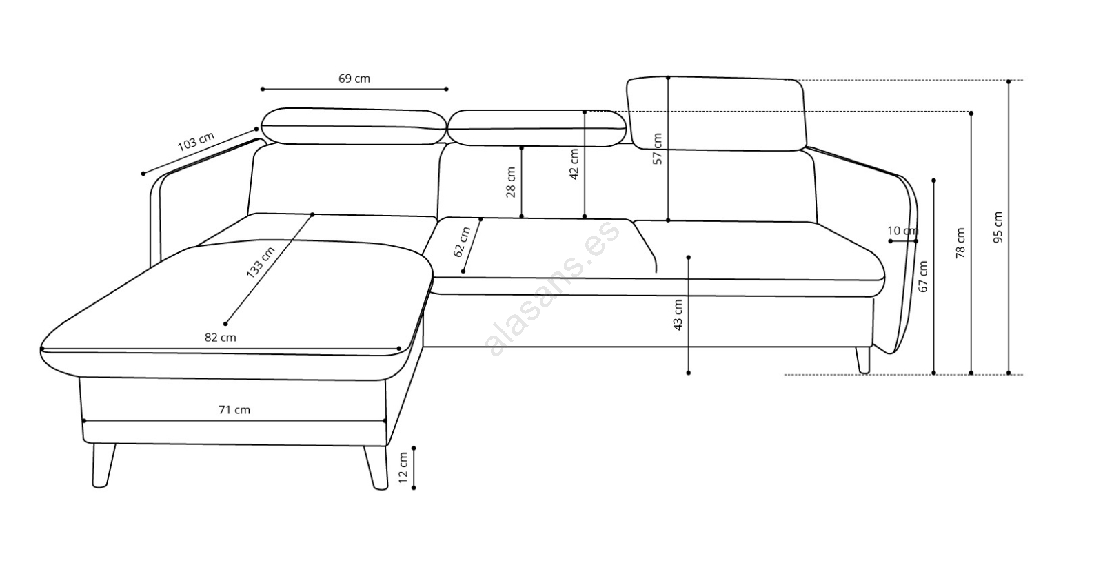 • La parte trasera del sofá presenta un tapizado de calidad, lo que permite colocar el sofá libremente en la estancia.