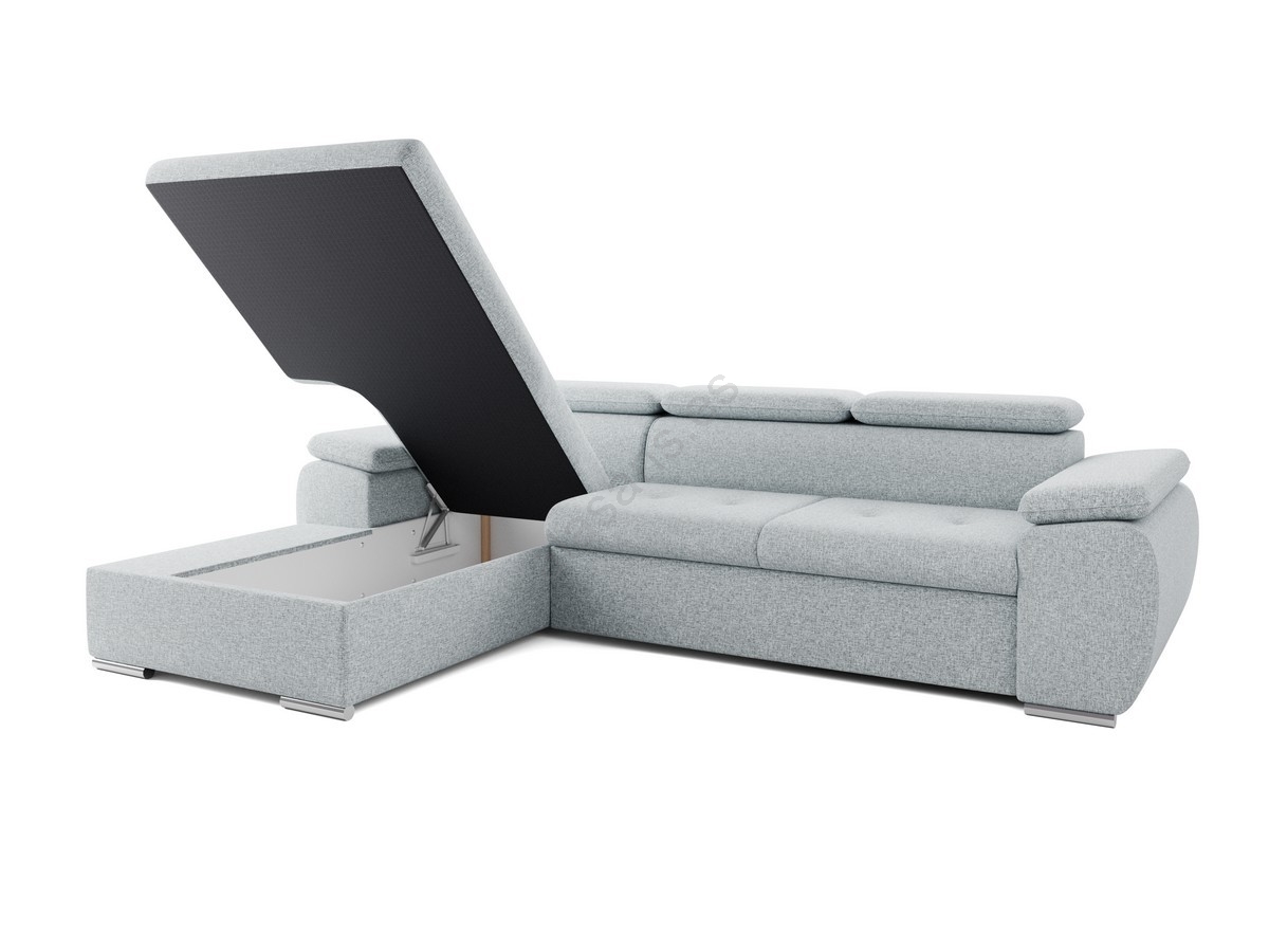 • Sofá esquinero en L convertible con arcón PADUA, gris, derecho